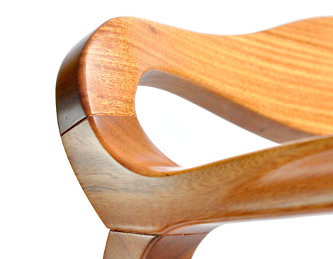 Esta silla, influenciada por la cultura escandinava de mobiliario, está construída con viraró macizo de fibras largas. Su atributo principal es la continuidad curva de sus componentes, lograda con carpintería de precisión y cuidado de los detalles, lo que permite las curvas continuas diseñadas para las patas, el asiento y la espalda. El asiento es desmontable, tapizado en cuero esmerilado y muy confortable.
