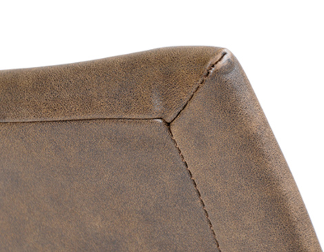 La doble curvatura del asiento y respaldo conforman una sola pieza, tapizada en cuero o tela, constituido por un sistema de lonetas y goma espuma entrelazados que le dan flexibilidad y resistencia al asiento.