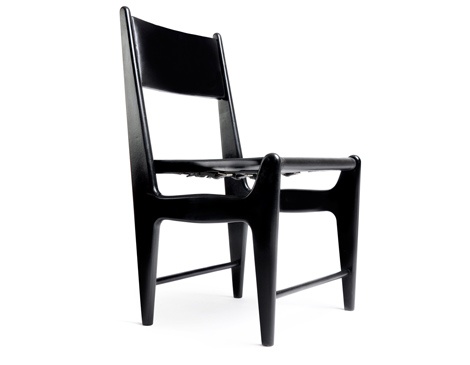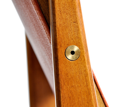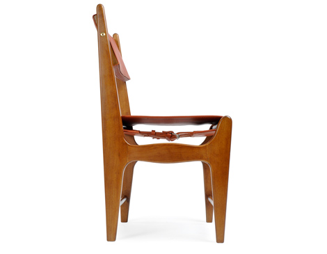 Diseñada especialmente para equipar la hosteria homónima de Portezuelo, Uruguay. La silla esta constituida por dos perfiles de madera engrosados en las uniones, diseño que le concede una cierta contundencia formal, con asiento de cuero tensado y un respaldo basculante.