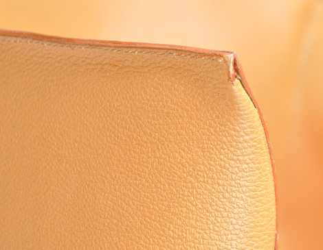Resuelta con una estructura de madera maciza, con lustre en diferentes acabados, y una funda que conforma el asiento - respaldo materializada en cuero suela concibiendo un asiento de generosas proporciones.